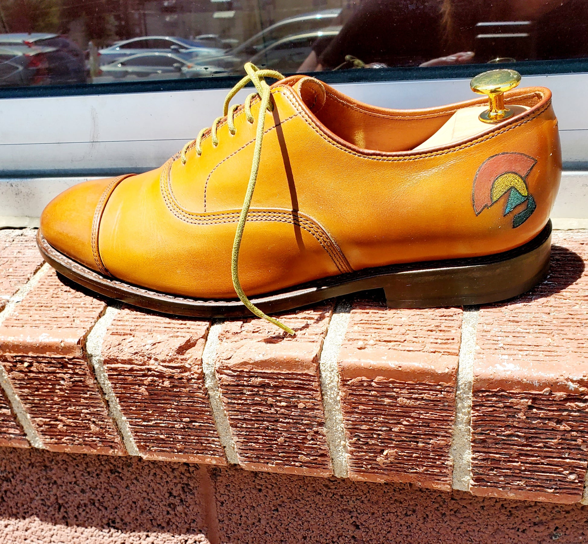 Yes an actual tattoo of anything you want on your shoes, boots, jackets and leather hand bags! Please email us a photo and the location you would like the tattoo to be. Once the stencil is placed we will send you a photo for approval before we tattoo it on!